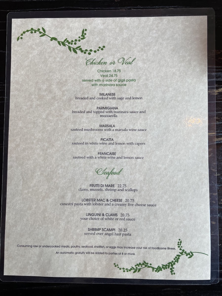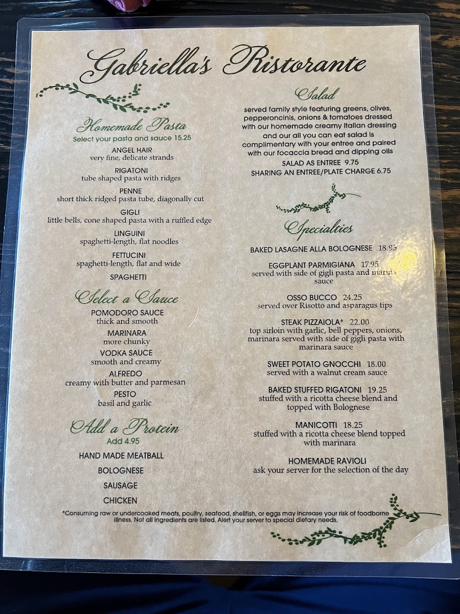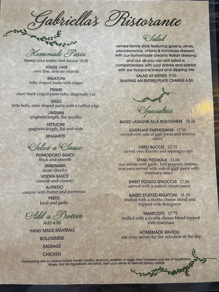 Gabriella's Ristorante Menu (Update 2025)